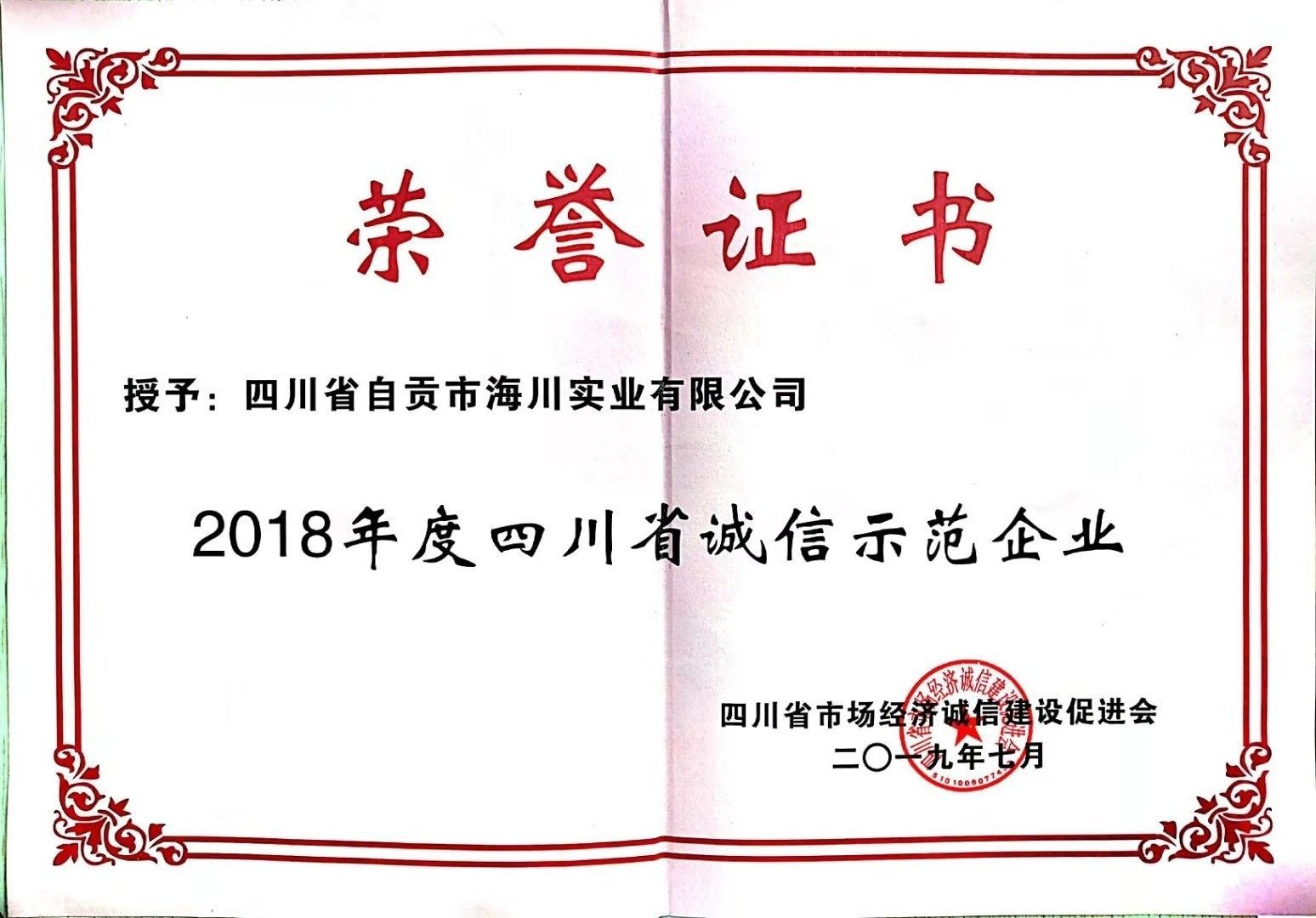 四川省誠(chéng)信示范企業(yè)