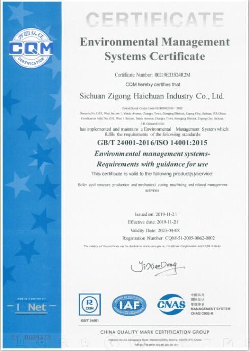 環(huán)境管理體系認(rèn)證證書(shū)(英文版)